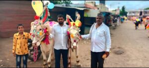 बँड पथकाच्या व डीजेच्या निनादात भव्य मिरवणूक काढून व तोरण तोडून हा बैलपोळा मोठ्या उत्साहात साजरा करण्यात आला.