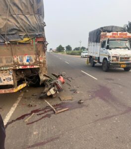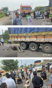 या अपघाताबाबत मिळालेली माहिती अशी की, भरधाव जाणारी मालवाहू ट्रक (टी एस 15,यु डी -2415) व दुचाकी (एम एच 03, ई एक्स- 5874) यांच्यात भीषण अपघात होऊन दुचाकी स्वार ट्रकच्या पाठीमागील चाकाखाली आल्याने त्यांचा जागीच मृत्यू झाला.