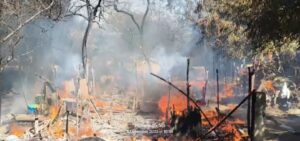 रोख रक्कमेसह कपडे, भांडे अशा संसार उपयोगी साहित्यासह चार जणांचा घरसंसार जळून खाक झाला. या आगीत सुदैवाने दोन जणांच्या झोपड्या बचावल्या. आगीचे कारण स्पष्ट होऊ शकले नाही. मात्र या घटनेमुळे लहान मुलांसह एकूण 19 जण उघड्यावर पडले आहे. ही घटना सोमवारी 8 डिसेंबर रोजी सकाळी 10:45 वाजेच्या सुमारास घडली.