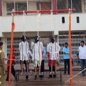 वाळूजमहानगर, (ता.27) – रांजणगाव (शे. पु.) येथील न्यू शहीद भगतसिंह विद्यालयात आयोजित करण्यात आलेल्या सांस्कृतिक कार्यक्रमात उत्कर्ष आहेर व अप्पासाहेब मिसाळ यांच्या मार्गदर्शनाखाली शहीदांना दिलेल्या फाशीचा सजीव देखावा सादर करण्यात आला. यावेळी उपस्थित विद्यार्थी, शिक्षक व पालकांच्या डोळ्यात अश्रू तरळले.