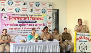 वाळुज महानगर, (ता.25) -शिवछत्रपती विद्यालय बजाजनगर या शाळेमध्ये विद्यार्थ्यांच्या सुरक्षिततेबाबत जनजागृती करण्यासाठी पोलीस निरीक्षक राजेश कृष्णा मयेकर वरिष्ठ पोलीस निरीक्षक महिला तक्रार निवारण केंद्र छत्रपती संभाजीनगर तसेच दामिनी पथक छत्रपती संभाजीनगर येथील वरिष्ठ कॉन्स्टेबल अनिता शिंदे, निर्मला निंभोरे यांच्या पथकाने विद्यार्थ्यांना सुरक्षिततेबाबत मार्गदर्शन केले.