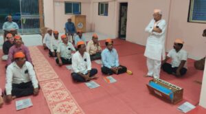 वाळुज महानगर, (ता. 9) – बजाजनगर येथील श्री गुरुदेव प्रार्थना मंदिरात अखिल भारतीय श्री गुरुदेव सेवा मंडळ, गुरुकुंज मोझरी जिल्हा अमरावतीचे सर्वाधिकारी लक्ष्मणराव गमे यांनी मंगळवार 8 जुलै रोजी सायंकाळी भेट दिली. यावेळी राष्ट्रसंत तुकडोजी महाराज रचित सर्वधर्मीय सामुदायिक प्रार्थना घेऊन घुमे यांचा मंडळाच्या वतीने सत्कार करण्यात आला.