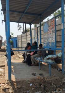 या बसथांब्याचेही अत्यंत दुरवस्था झालेली आहे. 8×12 या शेड सारख्या असलेल्या या बसथांब्याला नावच नाही. त्यामुळे तो बस थांबा आहे? हेच मुळात लक्षात येत नाही. शिवाय या बसथांब्यांच्या सभोवती सर्वत्र केर, कचरा, प्लास्टिक पिशव्या व धुळच धूळ आहे.